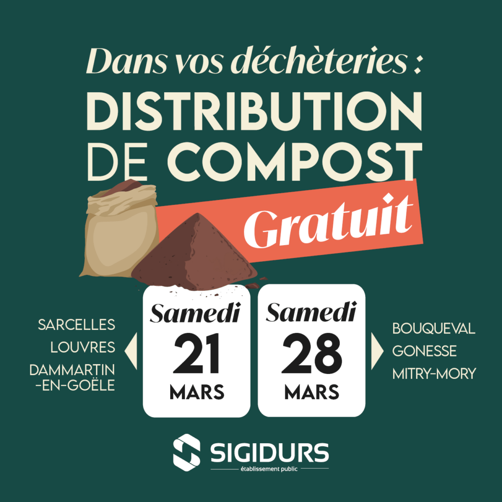 Le printemps approche et l’heure des plantations aussi. Le Sigidurs pense à vous et vous propose gratuitement du compost, un engrais naturel qui enrichit et améliore la structure du sol et fertilise les plantations. Alors, rendez-vous samedis 21 et 28 mars, munis de vos contenants pour en récupérer dans nos 6 déchèteries.